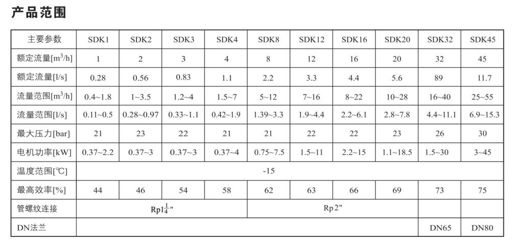 用于輸送機(jī)床冷卻液、潤滑液、冷 凝水輸送、工業(yè)清洗設(shè)備和其他適合侵入式泵使用的場合。SDK3適用于輕度腐蝕性液體,SDKT3適用于無腐蝕性液體。