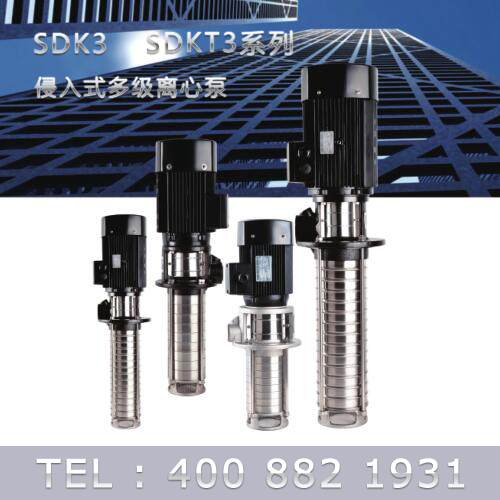 SDK3/SDKT3為配用標(biāo)準(zhǔn)電機(jī)的非自吸立式多級(jí)離心泵,電機(jī)軸和泵軸用聯(lián)軸器直接聯(lián)接的結(jié)構(gòu)。為滿足水槽或容器的安裝深度,可安裝空套的腔體來改變泵本身的侵入 深度。